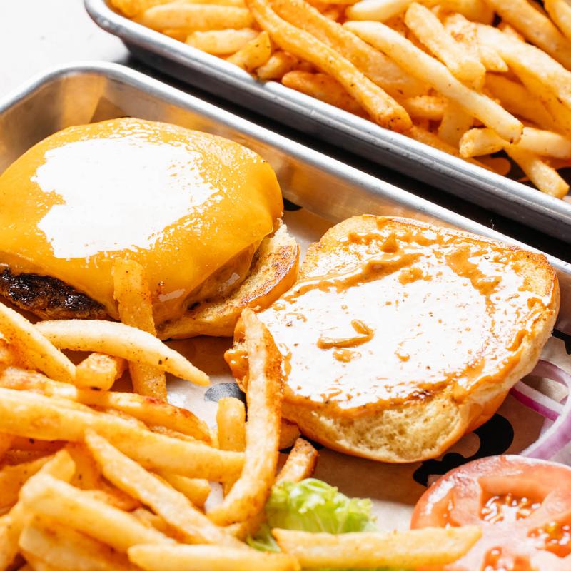 This 1/2 lb burger features two freshly ground Flurry smash patties, double cheddar cheese, and a generous pile of perfectly grilled onions, all on a soft and delicious Martin’s Potato Roll. Paired with our seasoned crispy fries and drink, it’s a mouthwatering taste of tradition with a Texas-sized flavor boost!