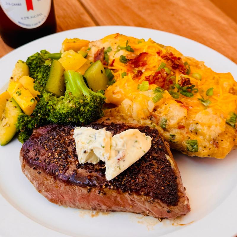 This isn’t your grandfather’s sirloin! Our 8oz , TX born and raised, sirloin steak is incredibly tender and packed with flavor, cooked to a perfect medium rare (or your preferred temp) for that ideal balance of juiciness and taste. Paired with our loaded potato and fresh seasonal vegetable, this sirloin dinner is simply spot-on—hearty, flavorful, and sure to satisfy